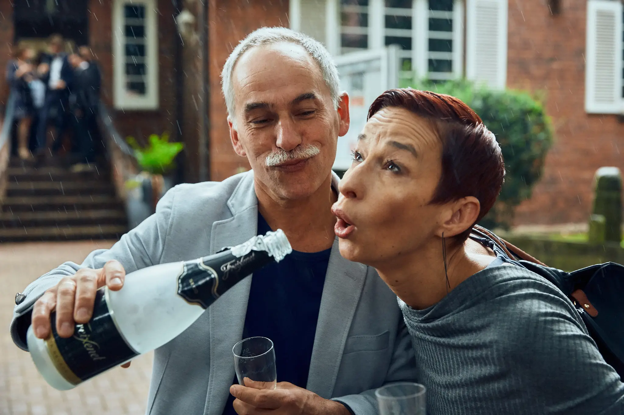 Regen ist kein Problem: wir nutzen überdachte Eingänge/Arkaden, helle Innenbereiche oder einen kurzen Schirm-Moment. Oft entstehen dabei sogar besonders schöne, echte Bilder.