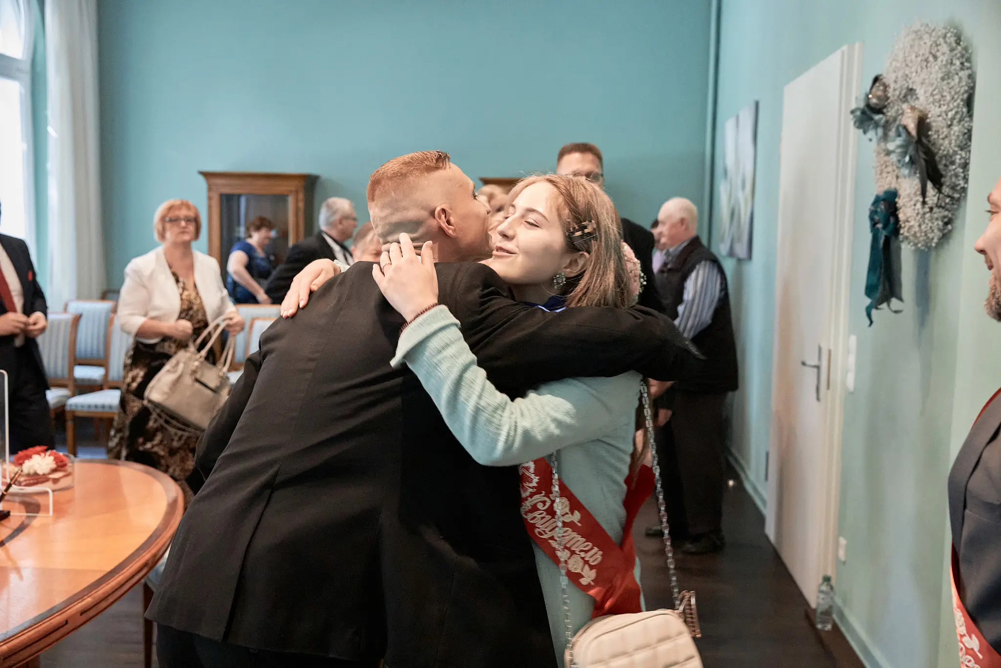 - Start im Trausaal: Trauung (Ringe, Kuss, Reaktionen)