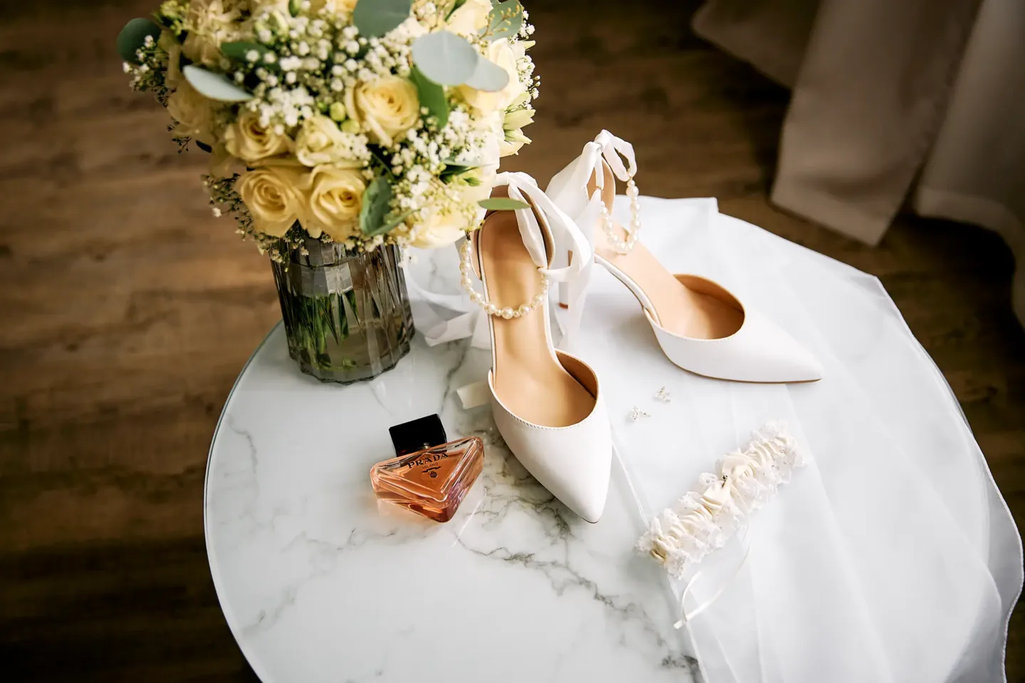 - Details beim Getting Ready: Kleid, Ringe, Einladung, Schmuck, Parfum